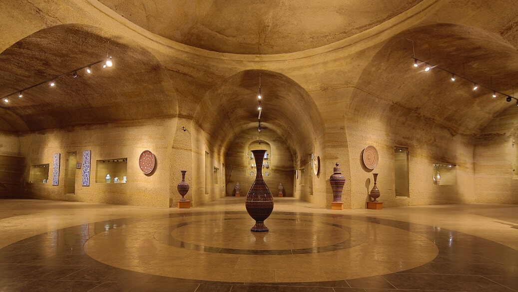 Müze, Avanos ilçesi sınırları içinde çağdaş müzecilik anlayışı ile kurulmuştur. Teşhir salonları, sosyal etkinlik alanları ve diğer hizmet birimlerinin bulunduğu yapı kayaya oyularak yerin 20 m altında 1600 m²lik bir alana inşa edilmiştir. Mimari yapısı ve konsepti müzeye dünyanın ilk ve tek yer altı seramik müzesi olma özelliğini kazandırmıştır.