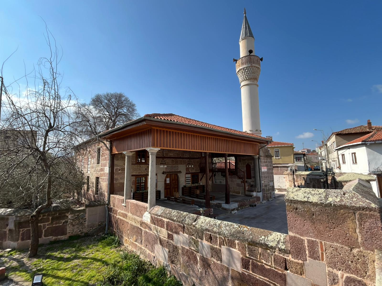 Caminin hemen yanında yer alan Taş Köprü ise 1795 yılında kesme taştan inşa edilmiş olup üç kemerli yapısıyla öne çıkar. Yaklaşık 27 metre uzunluğundaki köprü, caminin avlu duvarına bitişik şekilde planlanmış ve bu nedenle “Karşıyaka Köprüsü” olarak da anılmıştır.