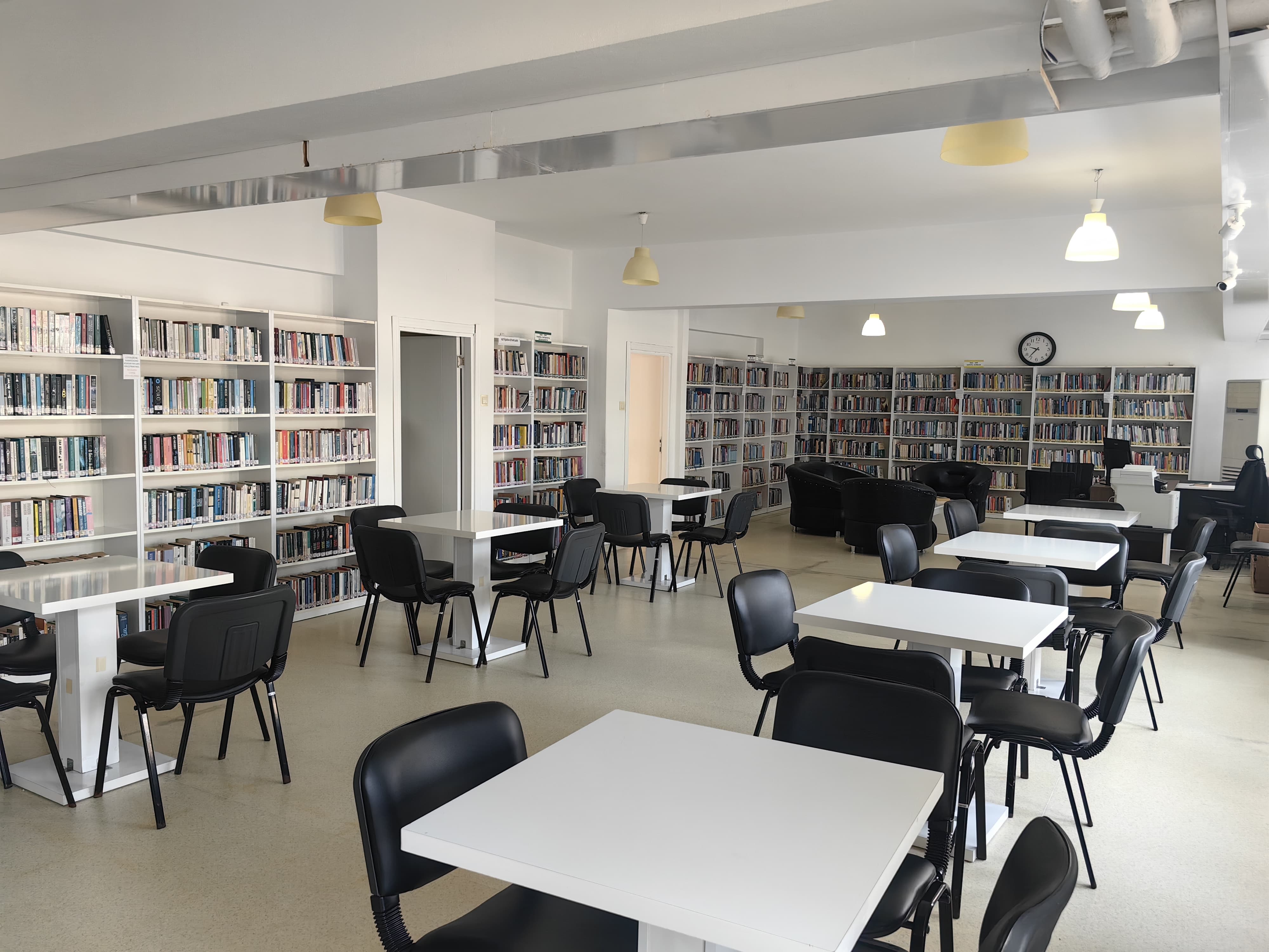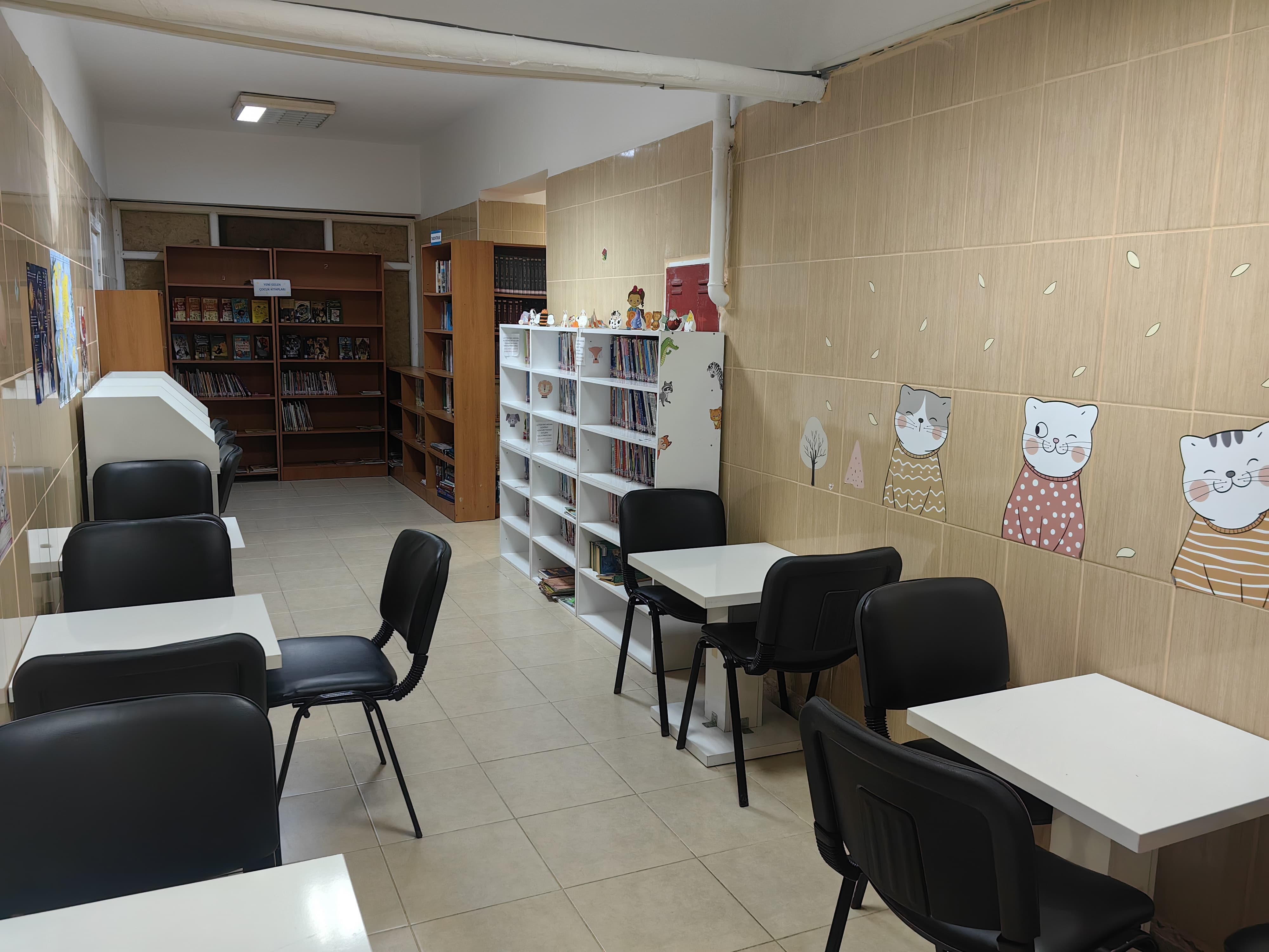 Bağımsız binasında hizmet veren kütüphanemizde 20.000'e yakın çeşitli alanlarda kitaplar, küçük grupları ağırlayabilecek etkinlik masaları ve görevli 2 personeli bulunmaktadır.