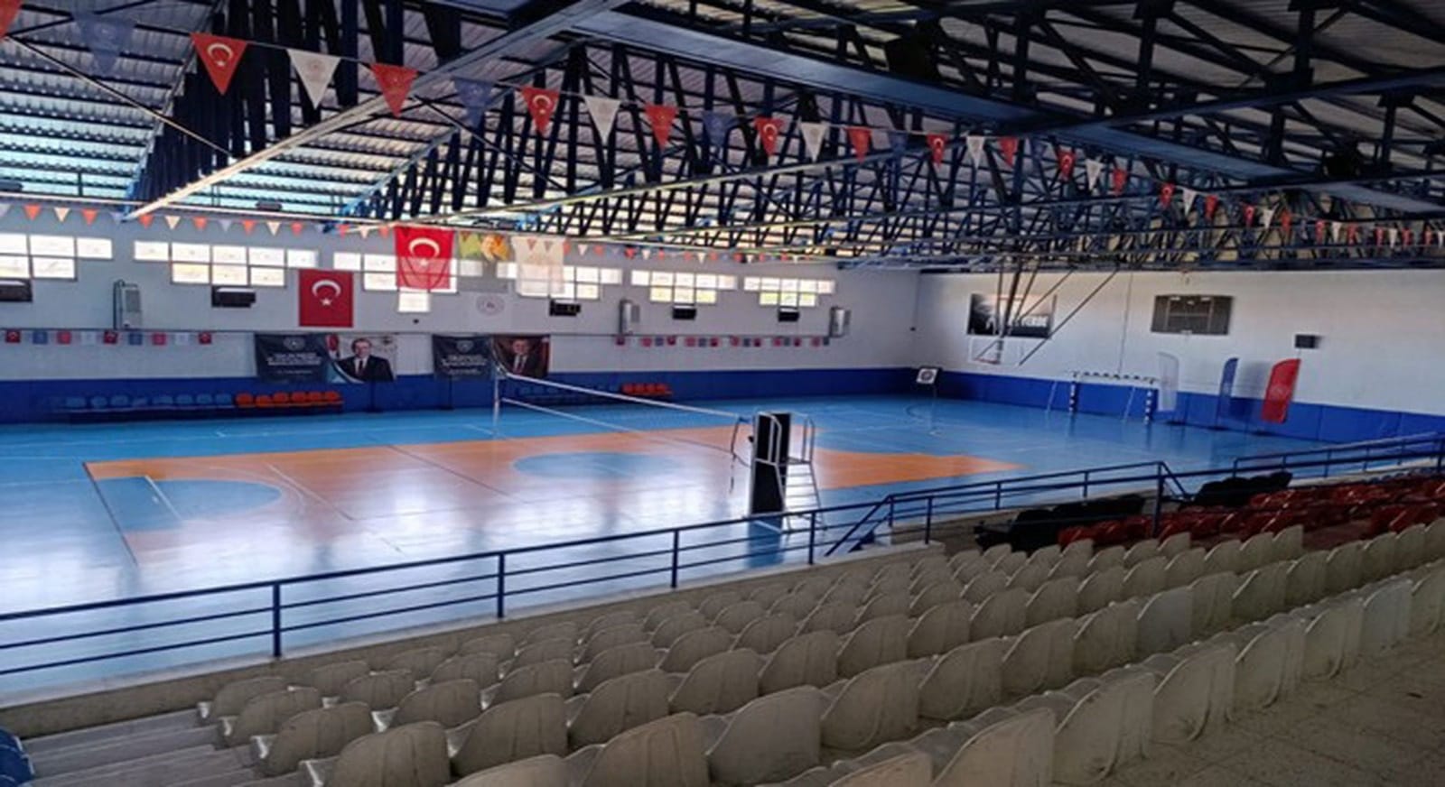 Tesisin Fiziki Özellikler: Poliüretan zemin (3773 M2), Duş, Soyunma Odası, Tesis Amiri Odası, Revir Odası, Hakem Odası, WC mevcuttur.