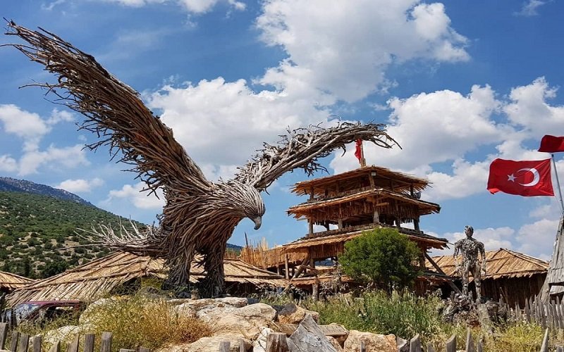 Köydeki yapılaşma tamamen ahşap. Ahşap malzeme çok iyi kullanılmış. Bu malzemeyi en iyi kullanan kişilerden biri de uzun yol şoförü iken heykeltraşlığa soyunan Durul Bakan. Bu konuda bir eğitimi olmamasına rağmen, harikalar yaratmış. Lisinia köy alanı içinde, sizi ilk heybetli bir kartal karşılıyor. Yapım tekniği, odun parçalarının çivi tabancasıyla birleştirilmesi. Hemen biraz ilerisinde bir adam heykeli. Köyün içinde, çeşitli yerlerde boğa, kurt, vaşak, at, köpek balığı heykelleri var. Atölyede, sipariş edilen heykellerin yapımı devam ediyor.
