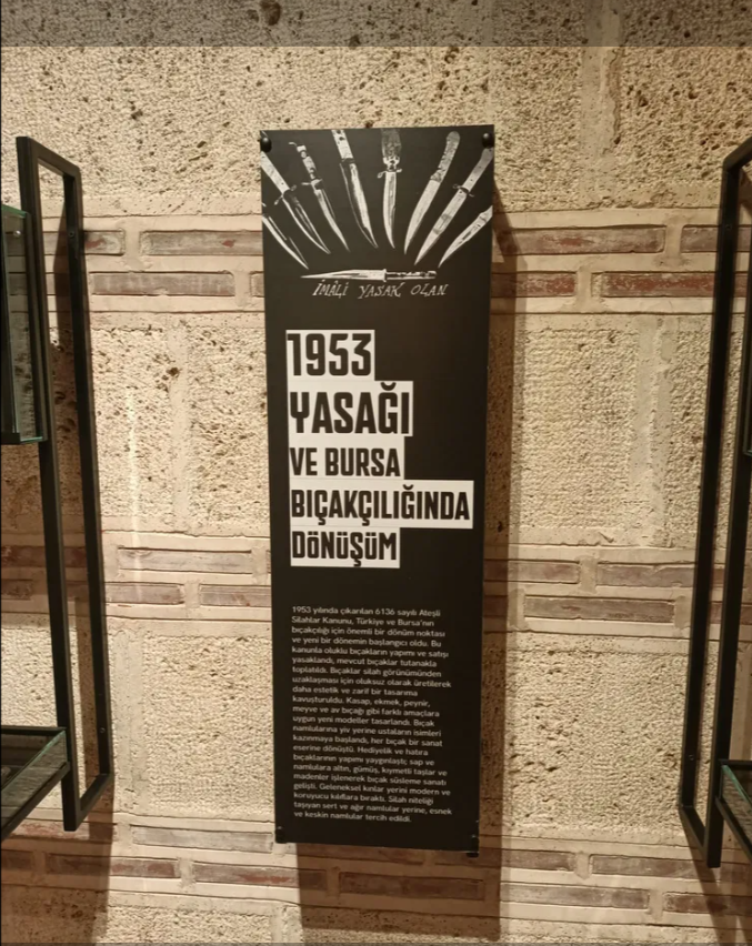 Bursa bıçakçılık mirasını dünyaya tanıtmak ve gelecek nesillere taşımak adına “Bursa Bıçak Müzesi” Balibey Han tarihi mekanında 21 Mayıs 2025 tarihinde açıldı.