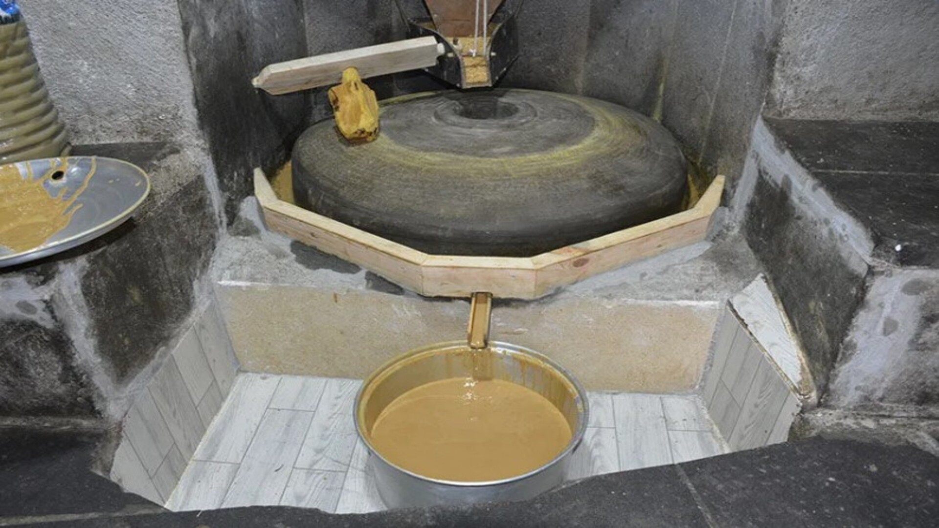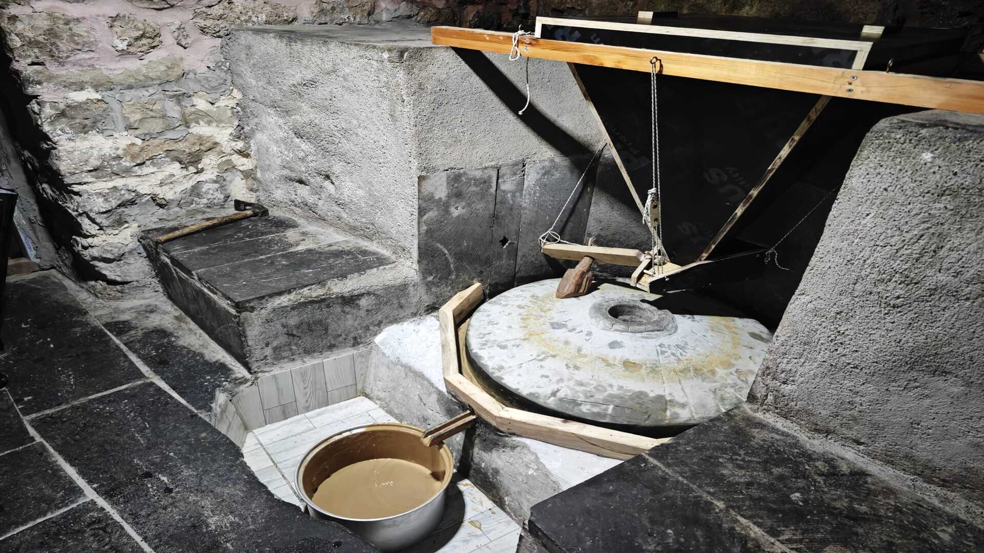 Su gücüyle çalışan taş değirmen, gün boyunca sürekli dönerek üretim sürecinin geleneksel yöntemlerle sürdürülmesini sağlamaktadır. Bu yönüyle değirmen, hem yerel üretim kültürünü yansıtan hem de geleneksel gıda üretim süreçlerinin gözlemlenebileceği tarihî ve kültürel bir değer niteliği taşımaktadır.