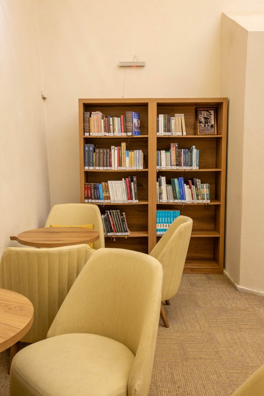 Açık ve kapalı alanında yaptığı sosyal ve kültürel aktivitelerle kaliteli zaman geçirilebilmesi için her yaştan okuyucuya hizmet veren, güncel ve zengin bir koleksiyona sahip kütüphanemizde gençlere ve çocuklara yönelik atölyeler yapılmaktadır. 50 kişi kapasiteli olan kütüphanemizde 2 okuma salonu bulunmaktadır.