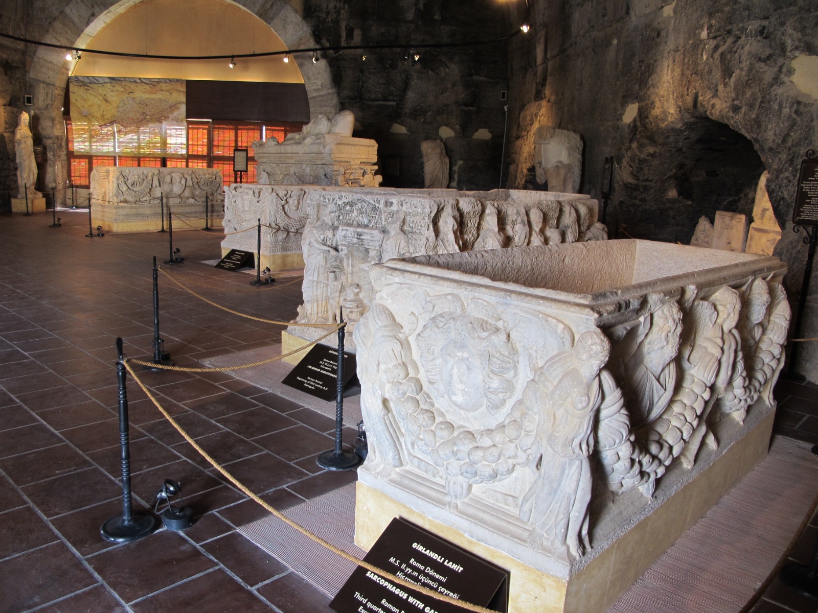 -Lahitler ve Heykeller Salonu: Hierapolis ve Laodikeia kazılarından çıkan eserler. Gladyatör dövüşleri ve boğa mücadelelerinin konu edildiği kabartmalar ile lahitler, Roma Dönemi'nin en güzel sanatsal örnekleri olarak sunulmaktadır.