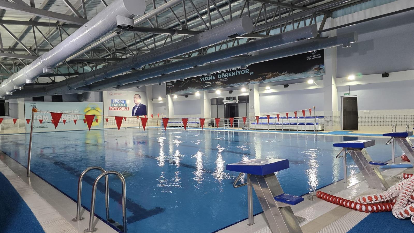 Gençlik spor ilçe merkezi bünyesinde bulunan havuz pazartesi günleri hariç haftanın 6 günü hizmet vermektedir. Yüzme havuzu üç gün salı, perşembe, cumartesi bayanlar çarşamba, cuma, pazar üç günde erkekler olmak üzere altı gün dönüşümlü bir şekilde hizmet vermektedir. Dört Antrenörünün gözlem ve eğitmenliğinde havuzdan yararlanıp eğitim alına bilinir. Havuza giriş veya kayıt için fiziksel başvuru yapılması gerekir. Yüzme havuzu aktif olarak kullanıma açık olup yaş gruplarına göre yüzme dersleri verilmektedir.