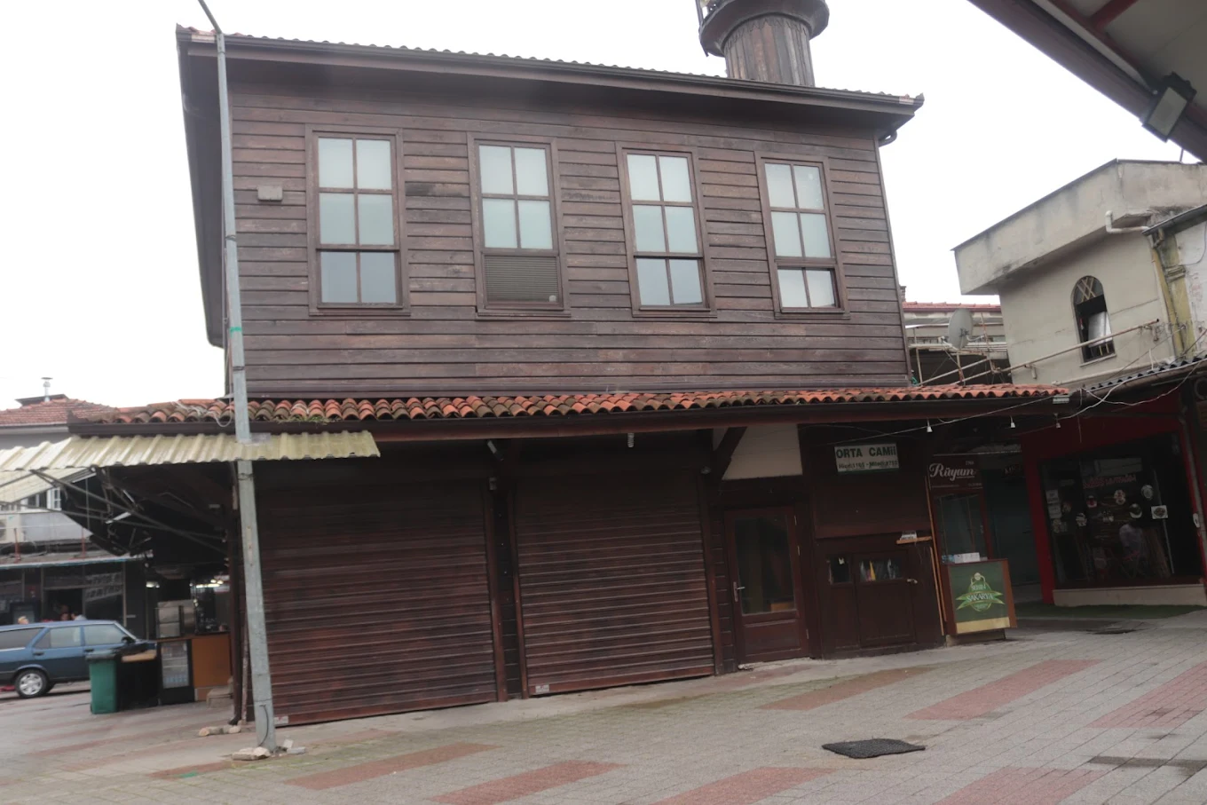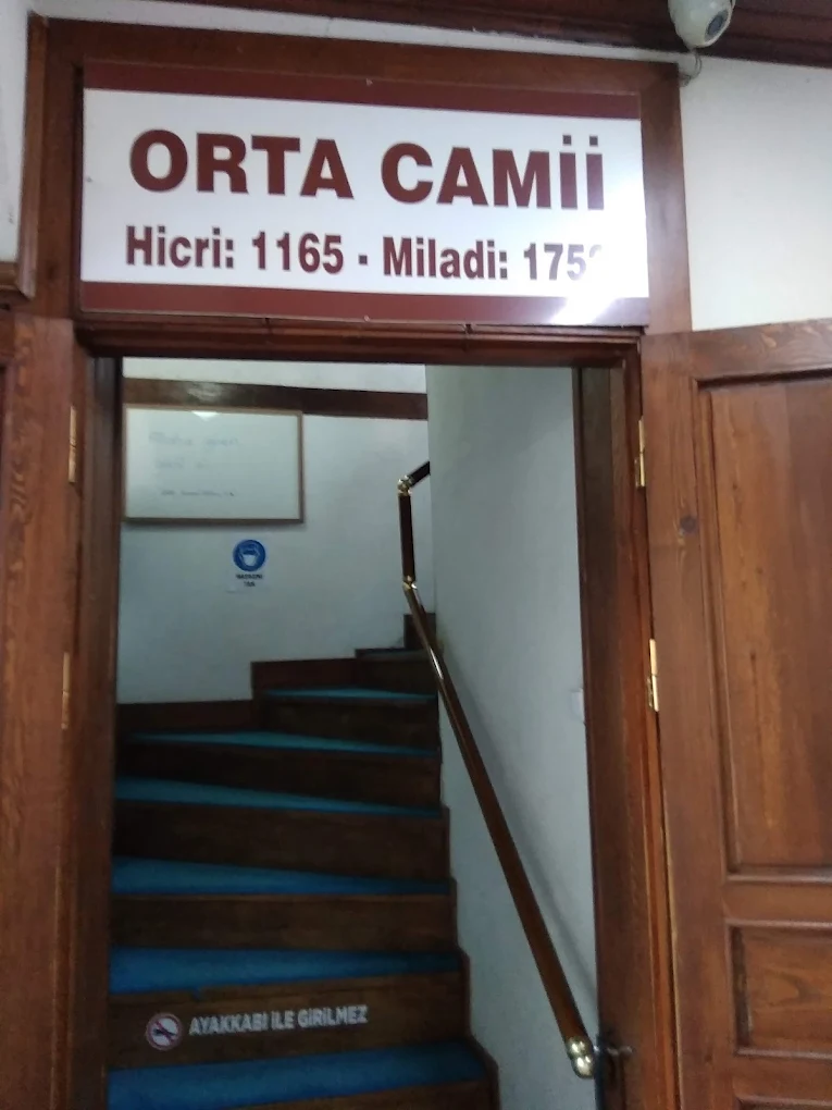 Orta Camii, Hicri 1165 (Miladi 1752) tarihinde yapılmıştır. Uzunçarşı içerisinde Pirinç Pazarı ve Aynalı Kavak Çarşısı arasındadır. Kare planlı, iki katlı yapının üst örtüsü kırma çatı olup, kiremitle kaplıdır. Cami yapı tekniği olarak kâgir dir ancak dış cephe duvarları ahşap kaplamalıdır. Cami tek minarelidir. İbadete açık olan üst katı, caminin orijinal hâlini yansıtmaktadır. Üst kat aynı zamanda asma bir kata sahiptir. Bu asma kat kadınlar mahfeli olarak kullanılmaktadır. Harim kısmında, müezzin mahfeli, mihrap ve ahşap olan tavan ve süslemeleri orijinalliğini korumaktadır. Camiin ilk katında dükkân olarak kullanılan kısmında, şu anda dükkânlar arasında kalmış bir de şadırvan yer almaktadır. Şadırvan cami ile beraber yapılmıştır. Ulaşımı asfalt yol olup her mevsim gidilebilmektedir.