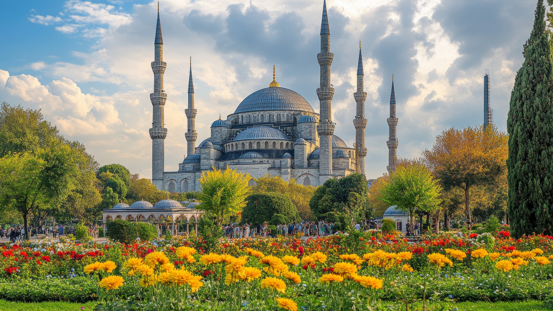 Sultanahmet Camii, 1609-1617 yılları arasında Sultan I. Ahmed’in emriyle Mimar Sedefkâr Mehmed Ağa tarafından inşa ettirilmiştir. Osmanlı klasik mimarisi ile Bizans unsurlarının bir arada görüldüğü yapı, altı minaresiyle dikkat çekmektedir. Caminin iç mekânı, yaklaşık 21 bini aşkın İznik çinisiyle kaplanmış, bu nedenle yapı halk arasında “Mavi Cami” olarak anılmıştır. Geniş kubbesi ve yarım kubbeleriyle mekâna görkemli bir görünüm kazandırılmış, içeriye çok sayıda pencere açılarak ferah bir atmosfer sağlanmıştır. Caminin avlusu, yapının anıtsal etkisini güçlendiren unsurlar arasında sayılmaktadır.