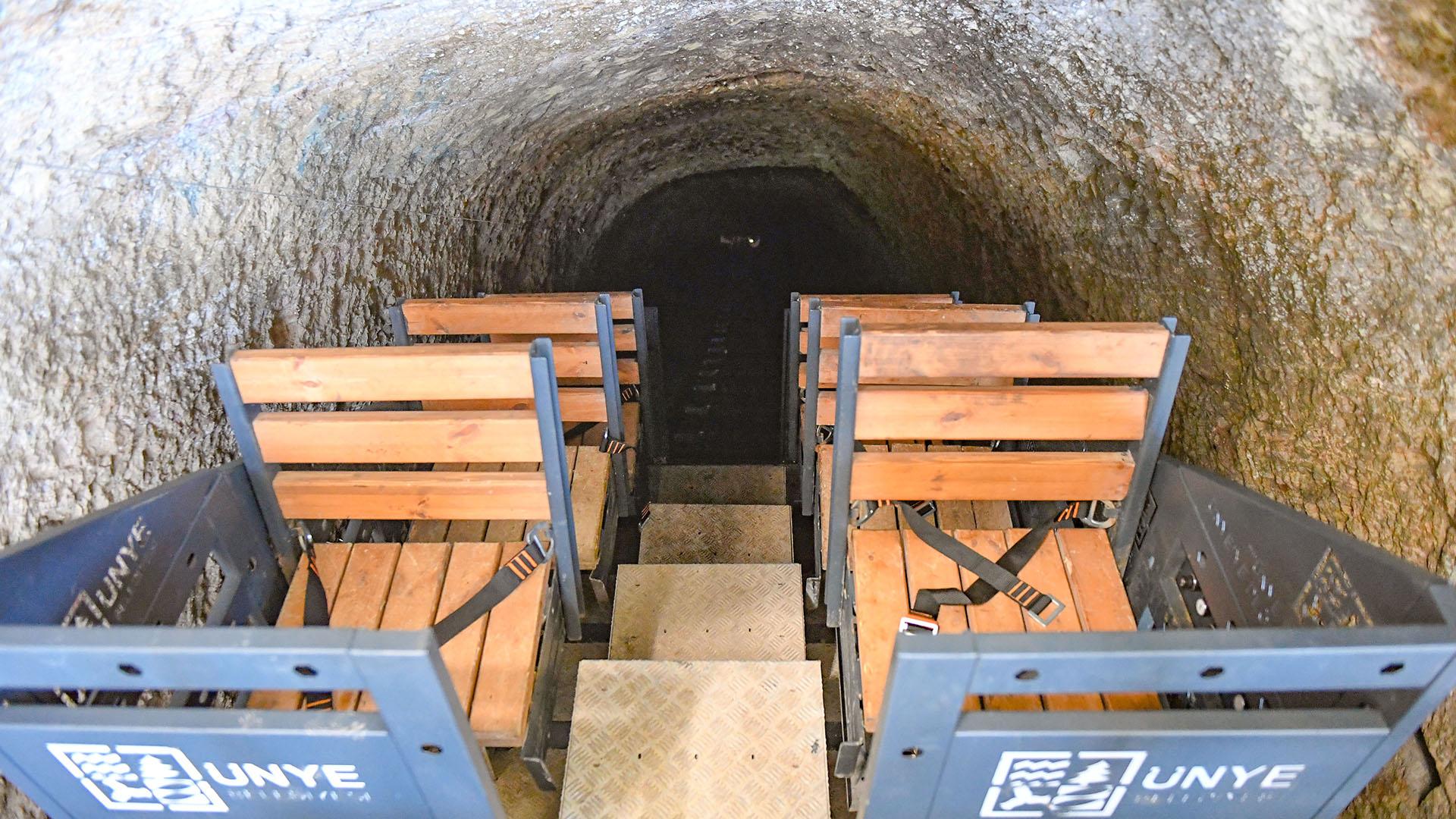 Kale’de zirveye yakın bölgede 45 derecelik eğimle kuzeybatı yönünde 2 adet dehliz bulunmaktadır. Dehlizlerden biri 420 basamaklı olup, kalenin eteklerine iniyor izlenimi vermektedir. Kral VI. Mithridates’i yenen Romalı komutan Pompeius, Ünye Kalesi ve diğer Pontus kalelerini tahrip ederek bu tünelleri büyük kaya parçalarıyla tıkamıştır.